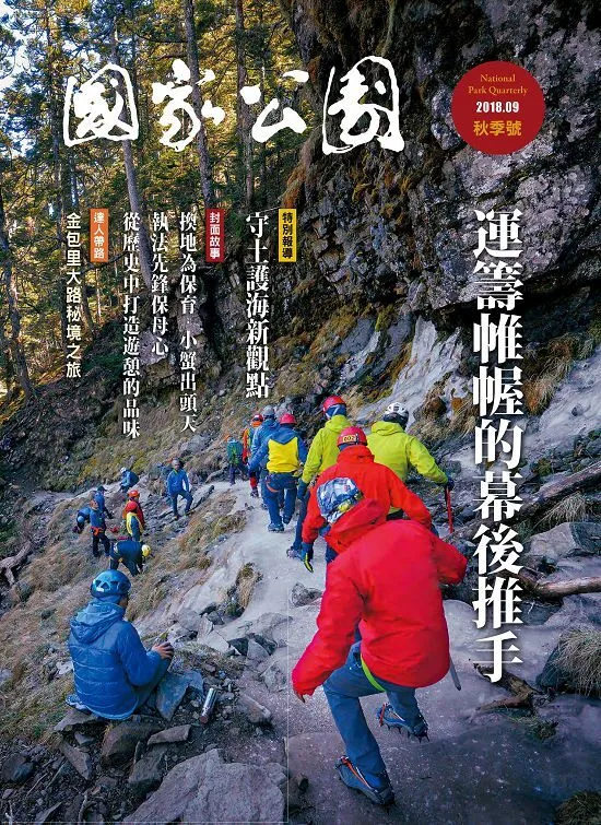今年即將全面實施《國土計畫》,國家公園未來如何強化在國土管理體系下的定位功能,特別報導為各位擷取營建署「國土計畫制度下國家公園功能定位檢討座談會」中,文化景觀、環境生態、國土規劃等專家學者的觀點與建議。 國家公園管理處有一群默默耕耘的幕後英雄,為國家公園經營管理而殫精竭慮。當得知陸蟹棲地可能因開發而受到難以平復的衝擊時,他們不辭辛勞在公私部門間奔走,爭取易地,最終換來改變的契機。保七總隊第四∼九大隊的執法先鋒們,穿梭野地、山林、車陣中,為人群服務,更要協助維繫法治的尊嚴、彰顯國家公園保育的決心。而國家公園的經營,需要地方共同戮力,發揮在地文化的特色,看金門國家公園如何從古厝歷史價值中打造出遊憩的品味,與地方共創永續新經濟。 「築於自然」要拜訪可以一眼看盡水上、水下生態全景的雙鯉濕地自然中心,了解這棟匠心獨具的建築。之後跟著資深國家公園人呂理昌,了解聯繫著過往聚落聯姻、地區經濟以及軍事機要的「金包里大路」。本期的「焦點透視」要來告訴大家一個重要的觀念─「將排遺帶下山」,對於高山環境有多重要!今年4月以全新面貌改版登場的雪見遊客中心,有最夯的AR擴增實境, 更有細緻的人文與生態解說展示!「他山之石」海達族與加拿大政府共管之路,一路走來雖然有過抗爭和衝突,但在環境永續的共同目標下, 逐漸邁向互信共好。「 閱聽的溫度」邀請到喜歡為在地說故事的王藝逢導演,跟著「海角鷹飛」的視角了解恆春半島。