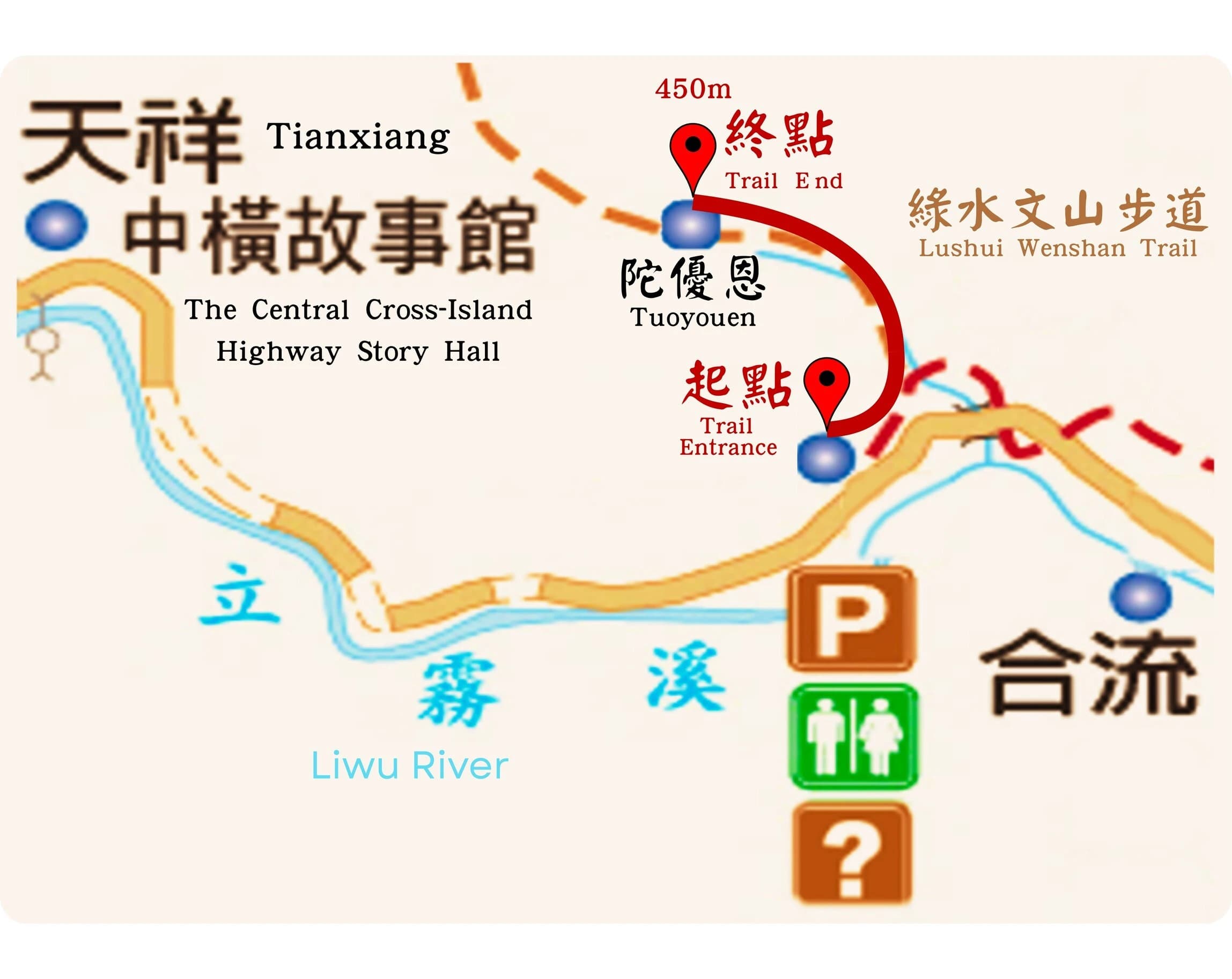 ✔ Lüshui Wenshan Trail (First Section – approx. 450 meters)