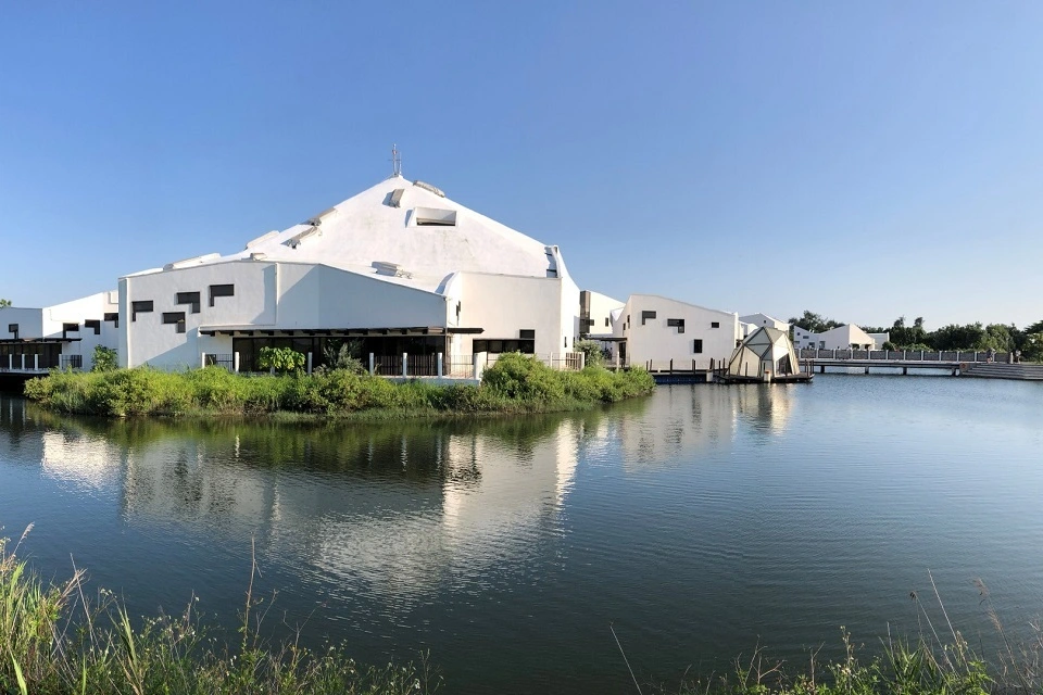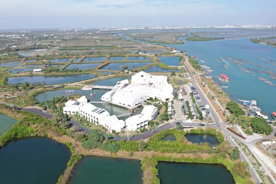 台江國家公園遊客中心暨行政中心園區,又稱「台江學園」,是座兼具生態與文化的「鑽石級綠建築」。保留既有魚塭地景,建築物以高腳屋型式立於水面之上,營造人與生態共存的友善空間。
