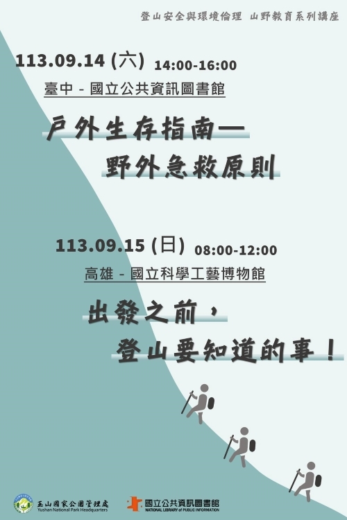 【登山安全與環境倫理】 ~113年山野教育系列講座~9/14臺中場