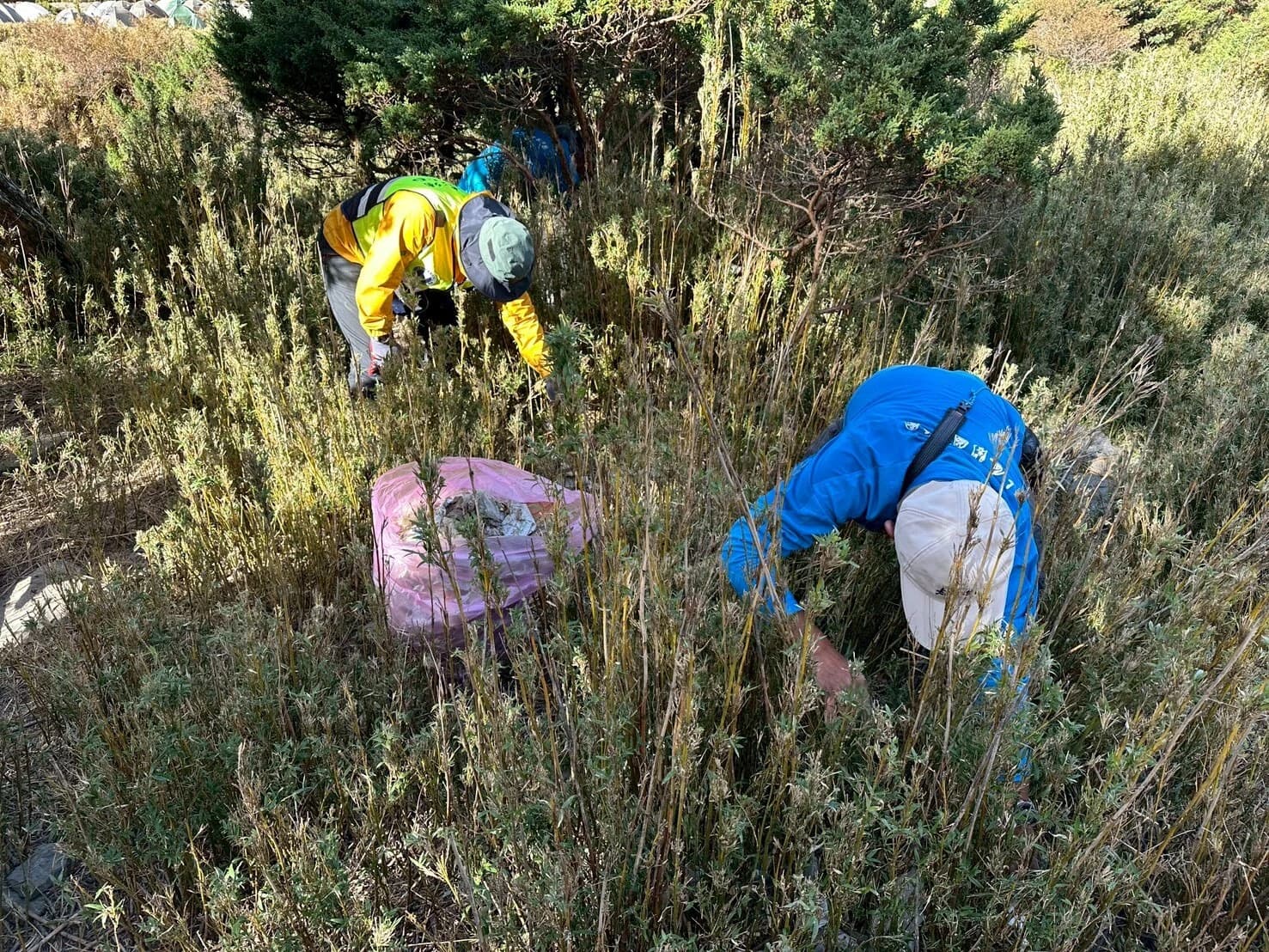 國慶假期期間,太魯閣國家公園管理處(以下簡稱太管處)辦理南湖山區淨山及垃圾帶下山宣導活動,活動期間山友熱情響應,除了協助志工伙伴撿拾山屋周邊垃圾及清理環境,體力較佳的山友,還幫忙將清理出來的垃圾帶下山,這次活動主要以清理南湖、雲稜山屋周邊環境為主,在大家共同努力下,將山屋周邊的垃圾清理乾淨,並清理出約200公斤的垃圾。