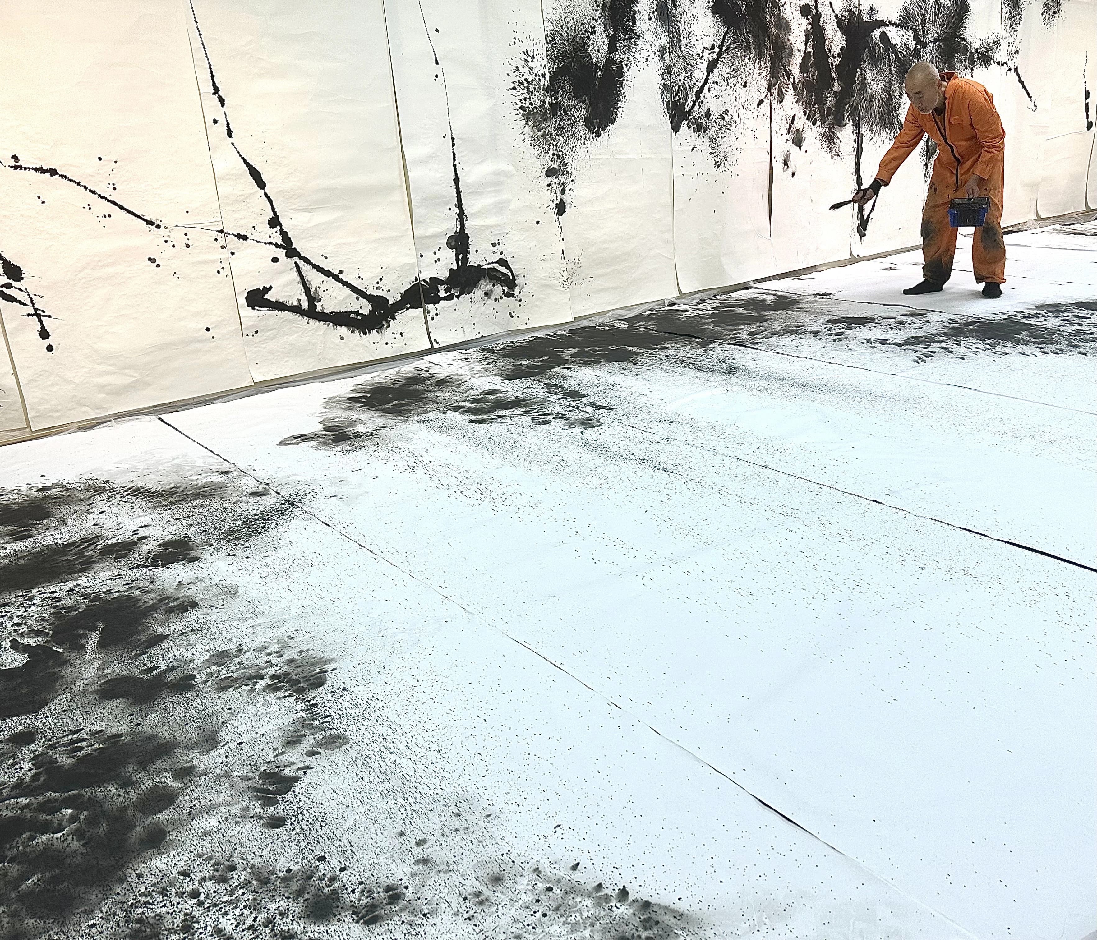 本次展覽最令人動容之處,在於這些作品是藝術家程延平先生在與帕金森氏症奮力抗衡下完成的生命篇章。程老師以堅韌的意志力,克服身體的限制,將身體的不安轉化為創作的能量。他筆下看似恣意揮灑的潑墨線條,實則是生命力頑強展現的結晶。每一幅作品都是他用意志力與畫布對話的證明,充分體現了藝術家超越身體侷限、追求精神自由的崇高情懷。這種不向命運低頭的創作精神,賦予了作品更深層次的感動與啟發性。
