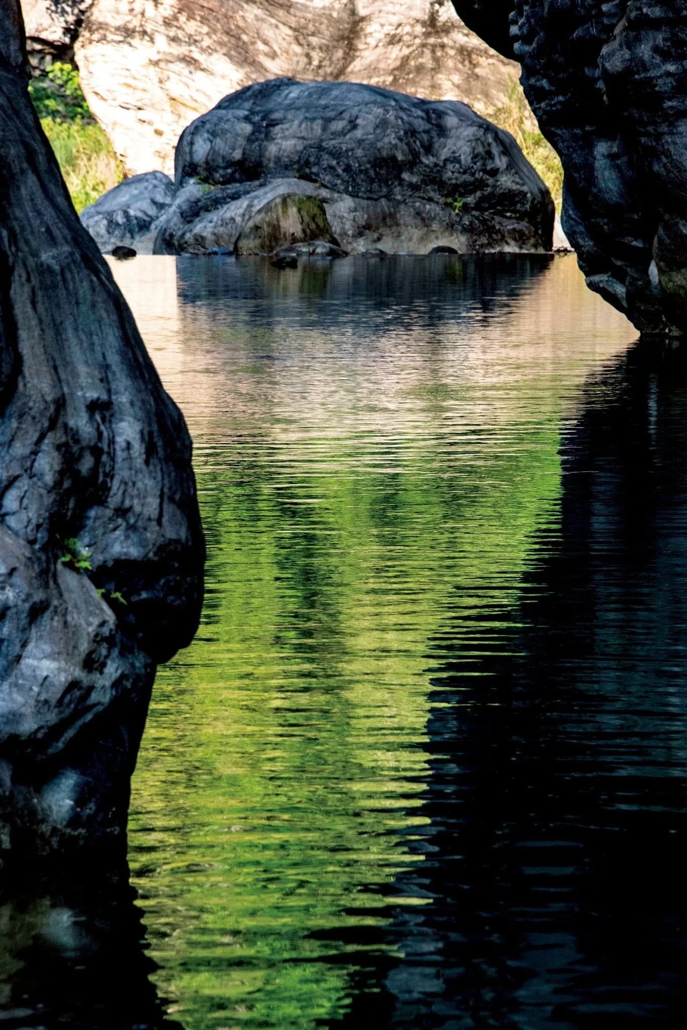 本次展覽集結了攝影師游登良無償提供的一百幅珍貴作品,他曾任職於太魯閣國家公園,多年來行走於峽谷與溪畔之間,退休後更幾乎天天走訪砂卡礑。他將攝影視為一種「修行」,致力於拍出石頭的生命與表情。游登良回憶,他最愛在清晨獨行於步道,與食蟹獴、山羊、黃喉貂等山林生靈對望,感受心跳加速的悸動。在他的鏡頭下,砂卡礑展現了靈動姿態,無論是清晨斜射入谷的黃金倒影、雨霧中色彩柔美的濡濕岩石,或是颱風過後洗盡鉛華、水與石關係簡潔純粹的奇幻景象,皆呼應了蘇東坡所言「水光瀲灩晴方好,山色空濛雨亦奇」的意境。