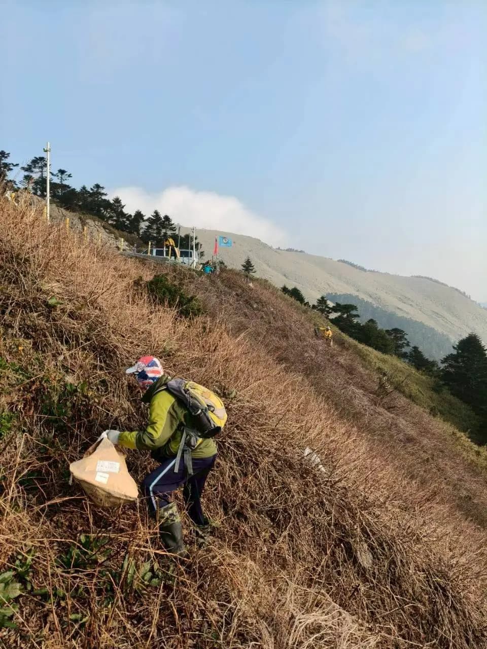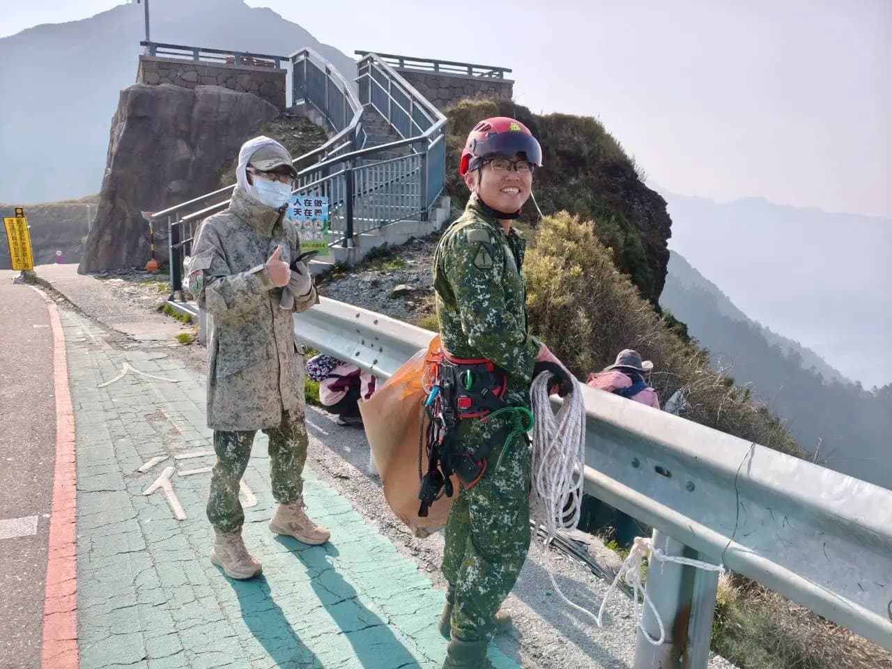 原籍土耳其的甘明章是「中華民國山野戰士救援教育協會」理事長,他親自帶領團員參與合歡山參的淨山。甘理事長表示,合歡山的壯麗風景是台灣珍貴的資產,希望能透過身體力行,回饋這片給予他第二個家的土地。在他的帶領下,團員們展現專業精神,不僅垂降清理陡峭岩壁下的垃圾,更協助處理許多隱蔽在草叢深處的廢棄物,用行動證明守護山林是不分國籍的共同使命。