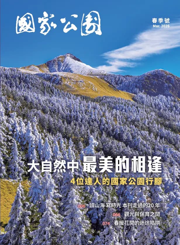 2026年,《國家公園》季刊邁向第21年,這20年來,我們不僅乘著國內外一道道保育之風飛翔,也以嘹亮的聲音,用中英文介紹著小小島國令人驚豔的保育故事。本期將於特別報導單元與大家一同「讀山海 寫時光」,看《國家公園》季刊如何與國家公園並肩前行。