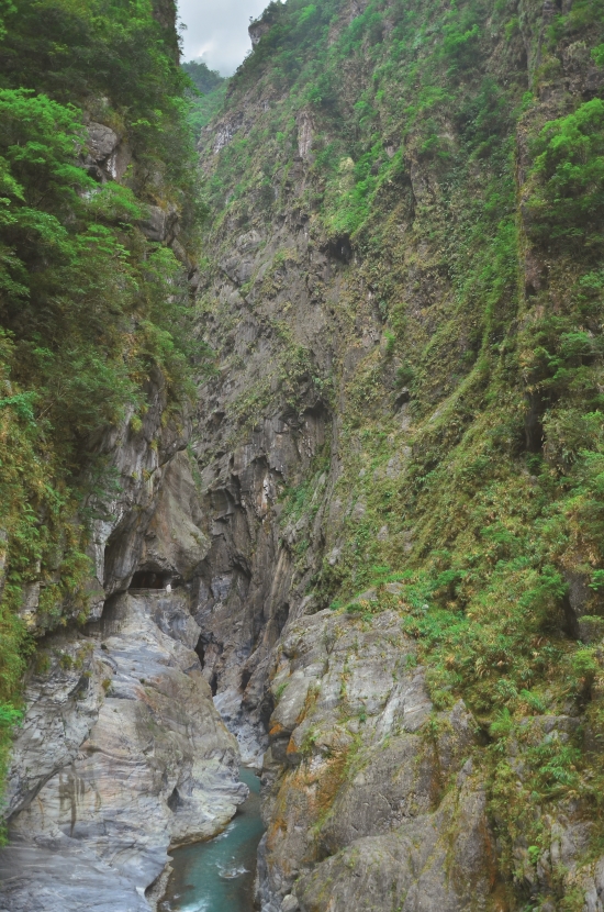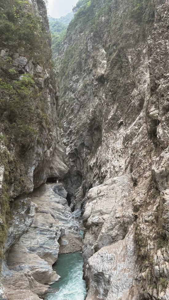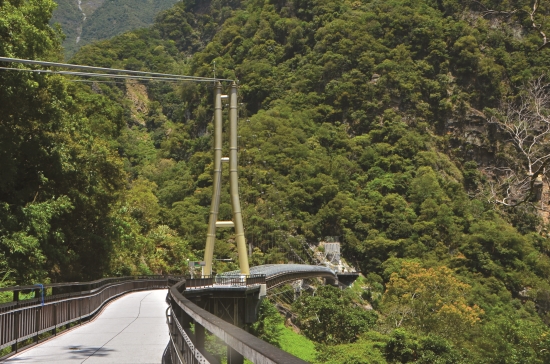再往前走一點,就可以進入布洛 灣吊橋了!吊橋高懸在153公尺 的立霧溪谷上,是凌空欣賞燕子 口峽谷的好位置。強震中,落石 擊損通往吊橋的步道,所幸吊橋 大致完好!期待步道修復,再來 一次居高鳥瞰峽谷的快意。