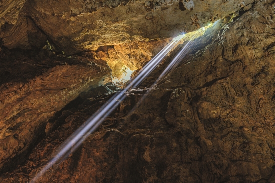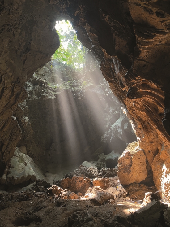 陽光透過洞頂的孔隙灑下,空氣裡的塵埃和水氣像是 在跳著圓舞曲般、形成獨特的光影效果。宛若「耶穌 光」般的絕美照片在社交媒體上迅速獲得了數千個讚 和分享。這裡是壽山國家自然公園的「天雨天財洞」, 自然奇觀不僅吸引了遊客,也引發了對洞穴開放與保 護的討論。