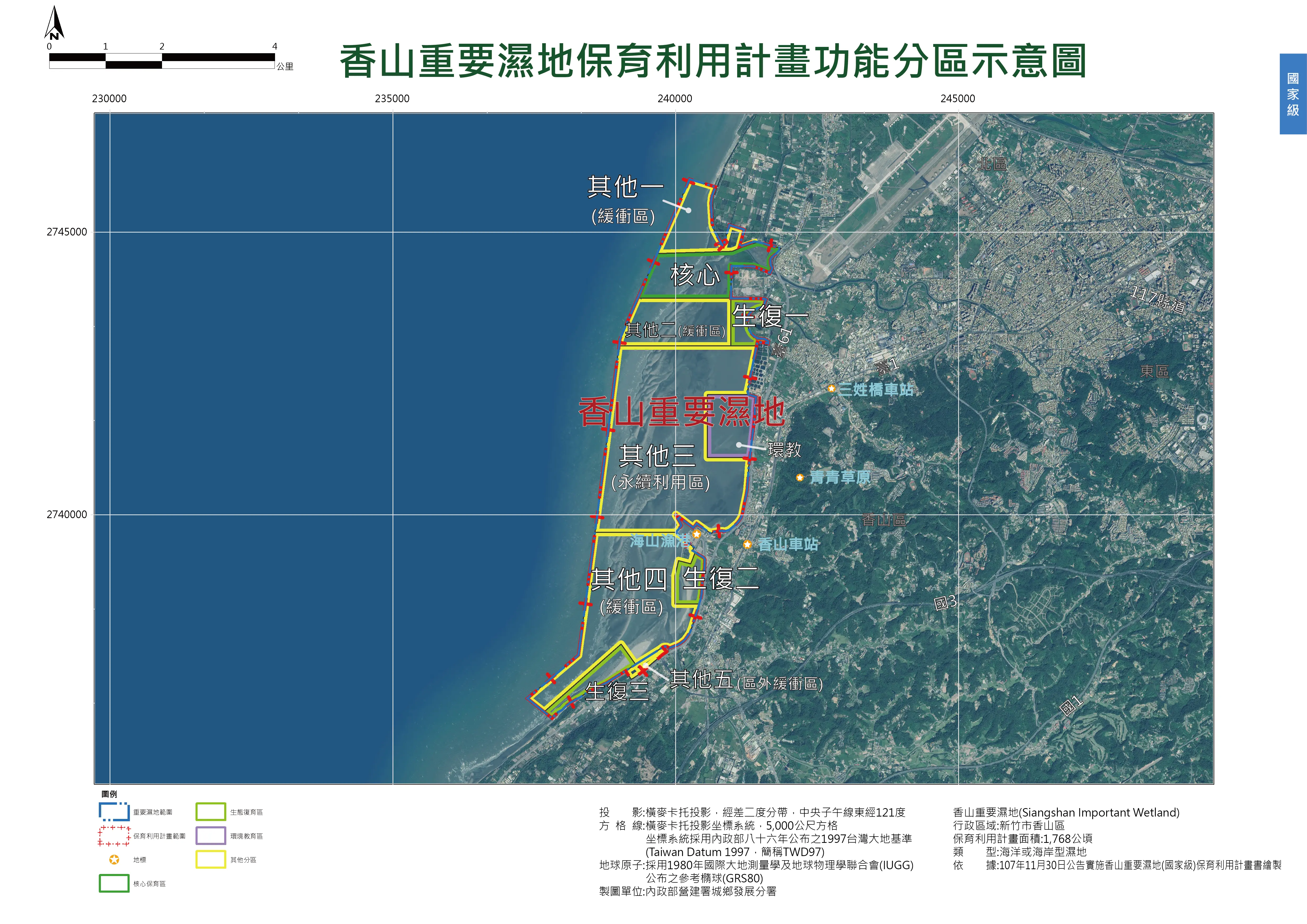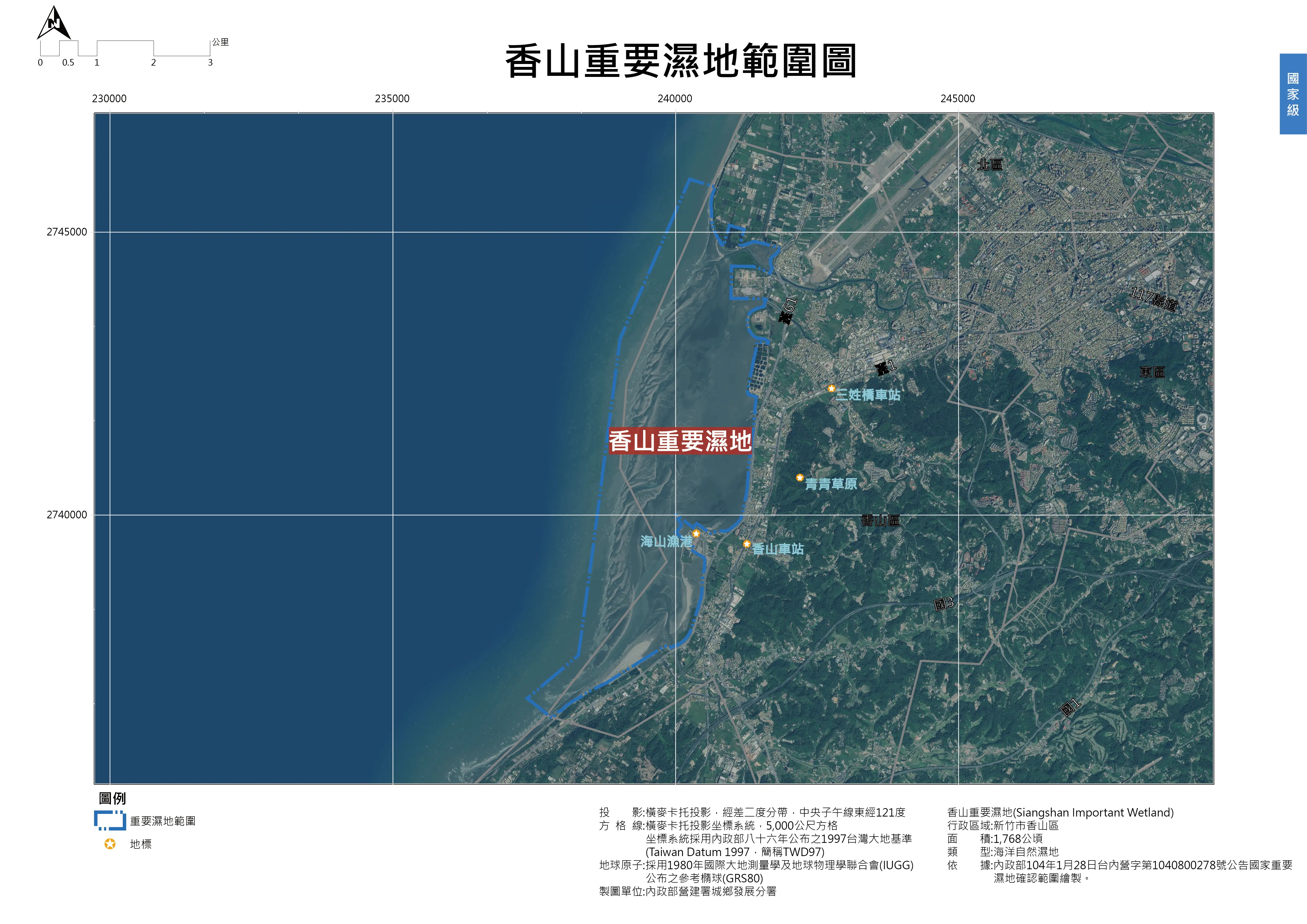 本濕地包括客雅溪及鹽港溪出海口,北起客雅溪口(含金城湖附近),南至無名溝(新竹縣、苗栗縣交界),東至海岸線,西至最低潮線(不包含現有海山漁港、浸水垃圾掩埋場及客雅污水處理廠預定地)。