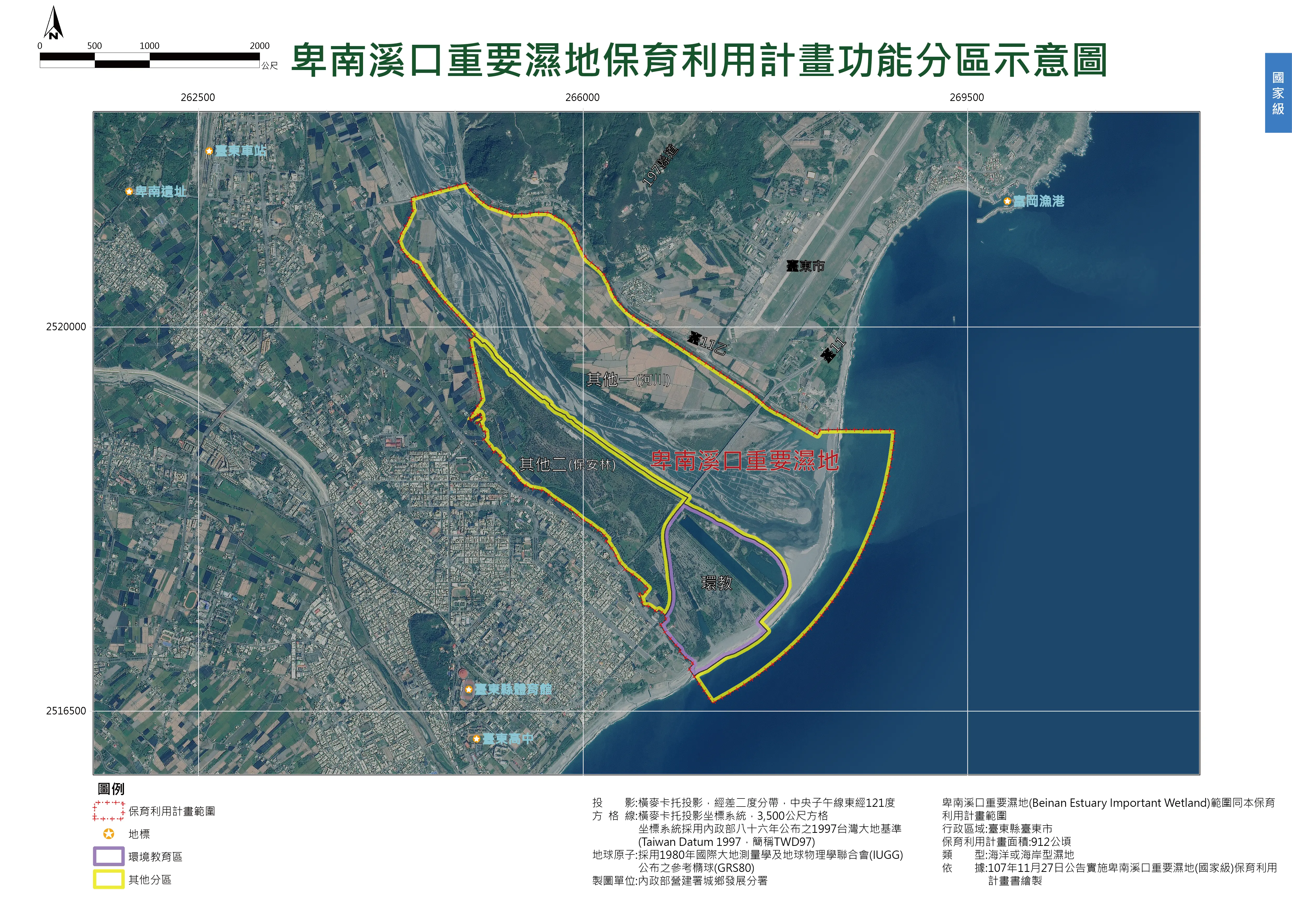 濕地西起臺東大橋,東至水深六米海域,北以志航路與吉林路為界,南至臺東森林公園馬亨亨大道為界定範疇。