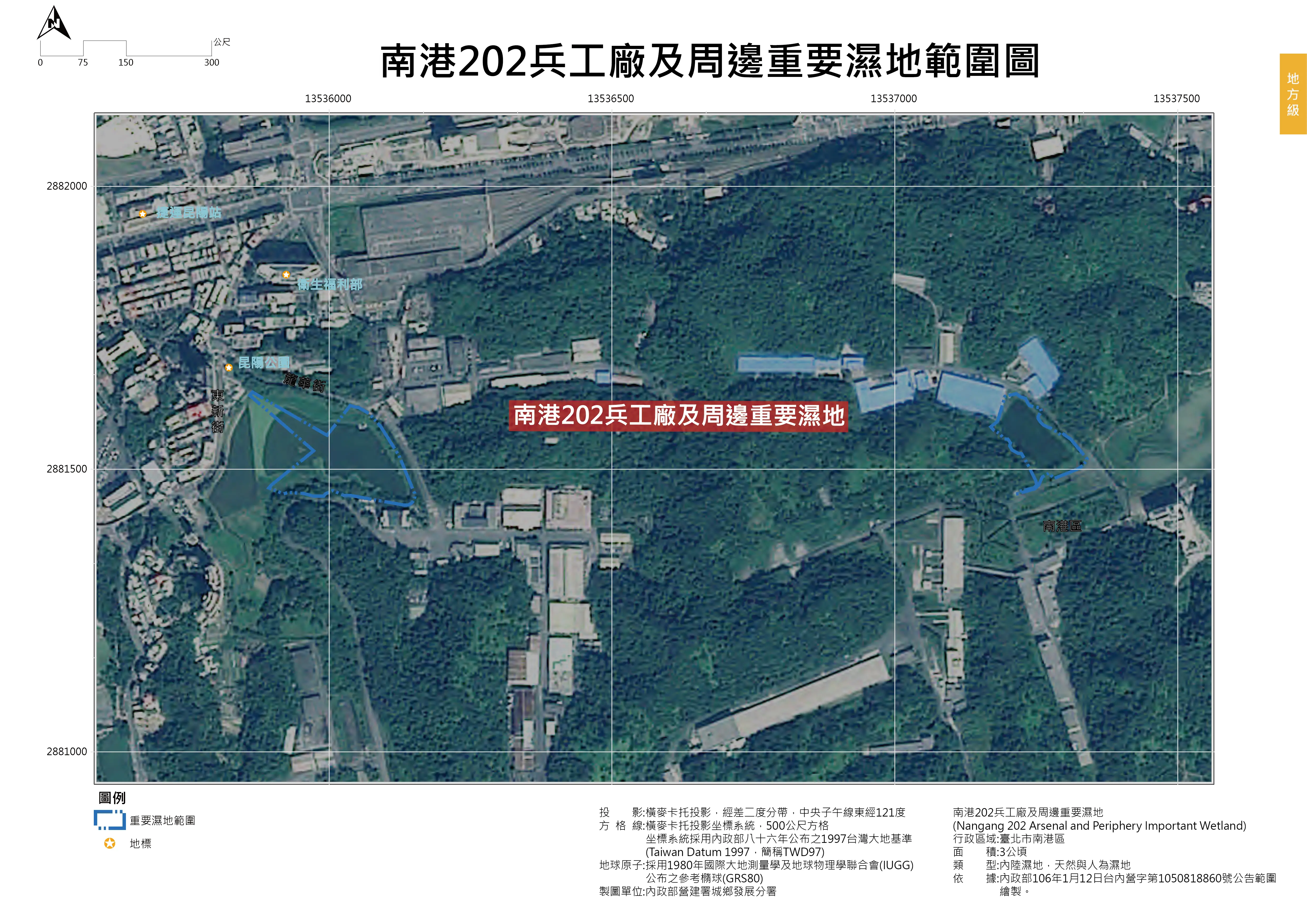 本濕地位於臺北盆地東緣,介於基隆河南岸南港山系之北側。範圍內有兩處埤塘,新庄仔埤與三重埔埤相距約900 多公尺,均位於國防部軍備局生產製造中心第202 兵工廠內。