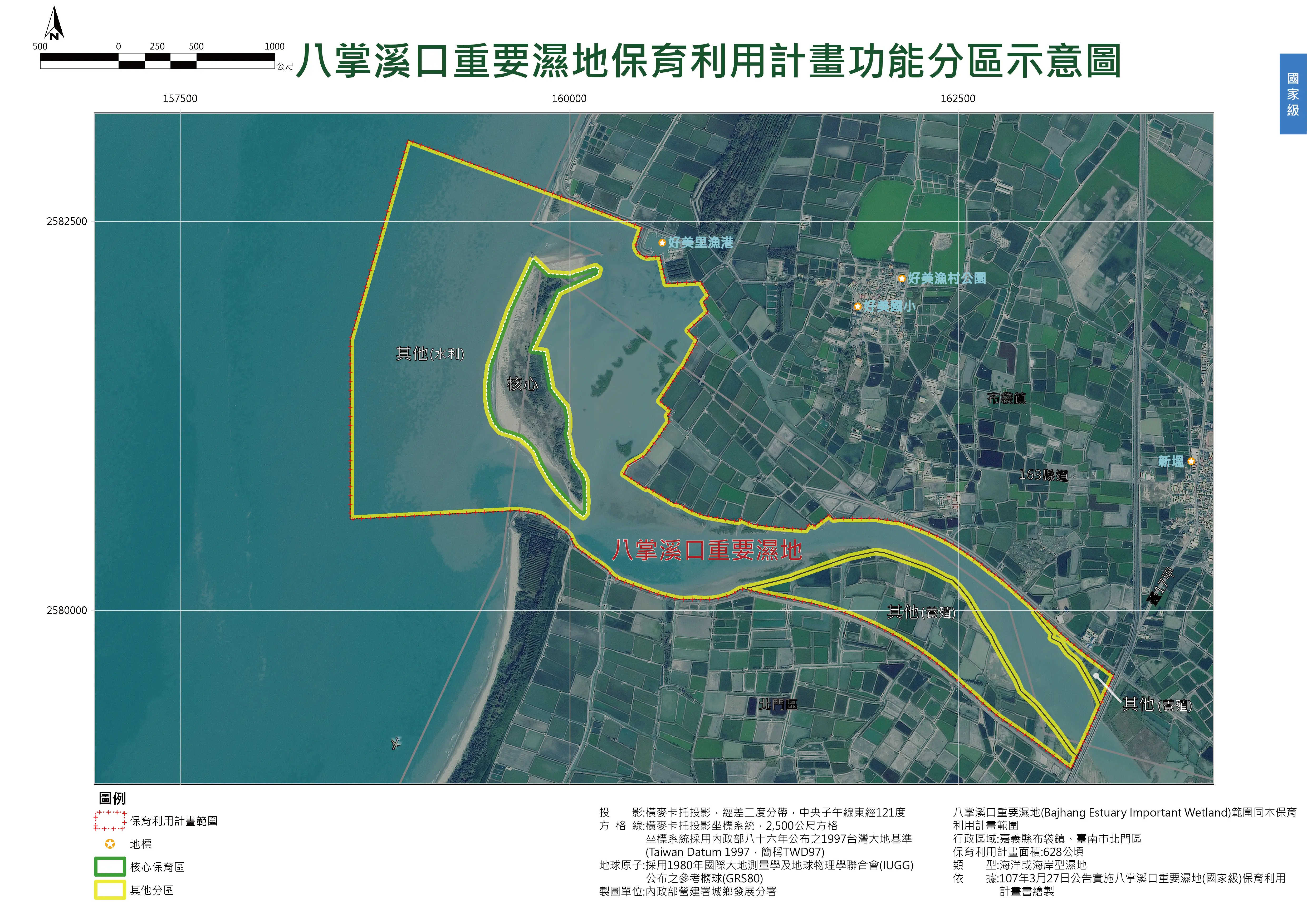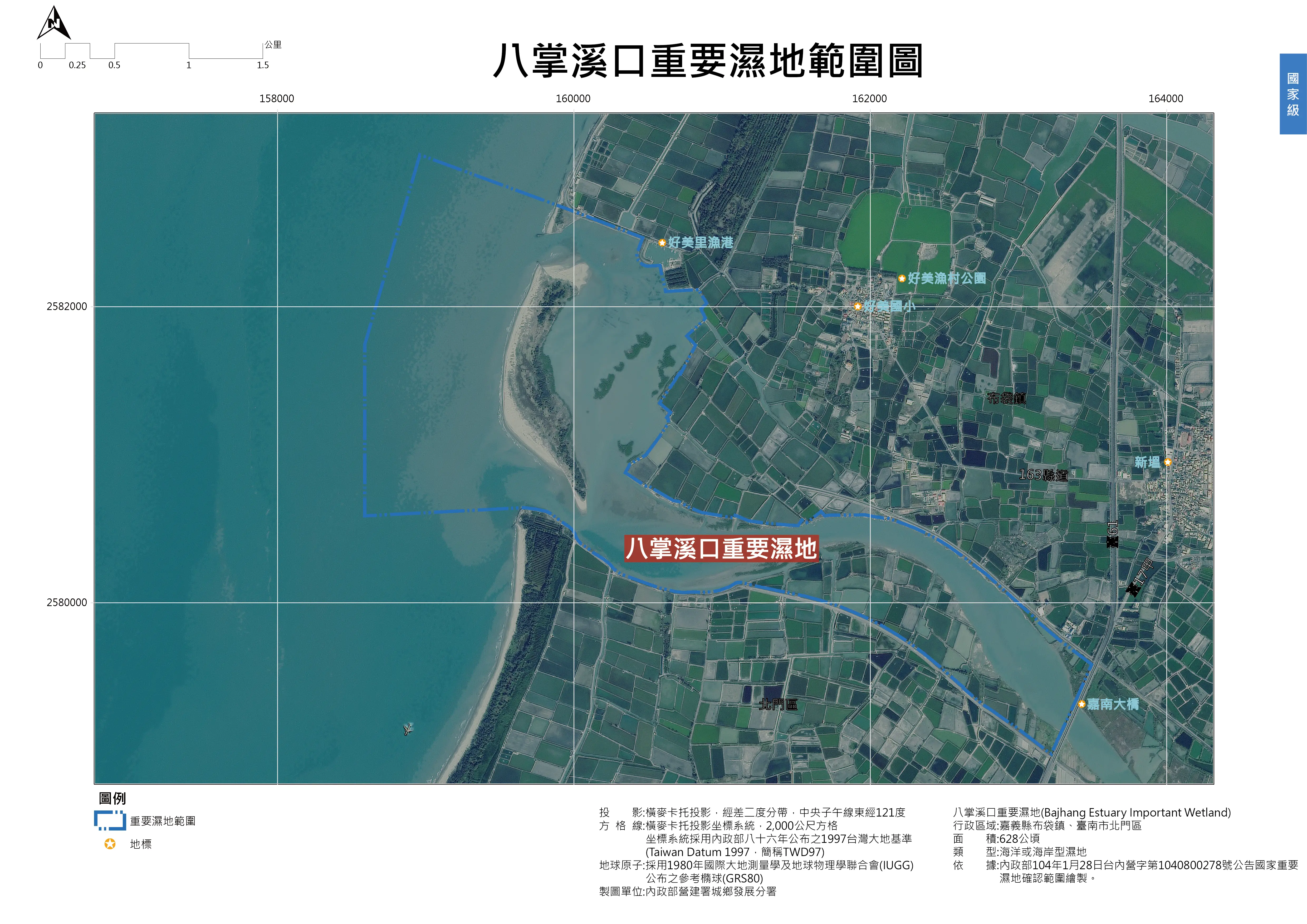 範圍北毗鄰好美寮濕地南側及八掌溪北岸堤防,南至北馬堤防,東以西濱快速道路台 61(嘉南大橋)為界,西側海域至等深線6公尺處。