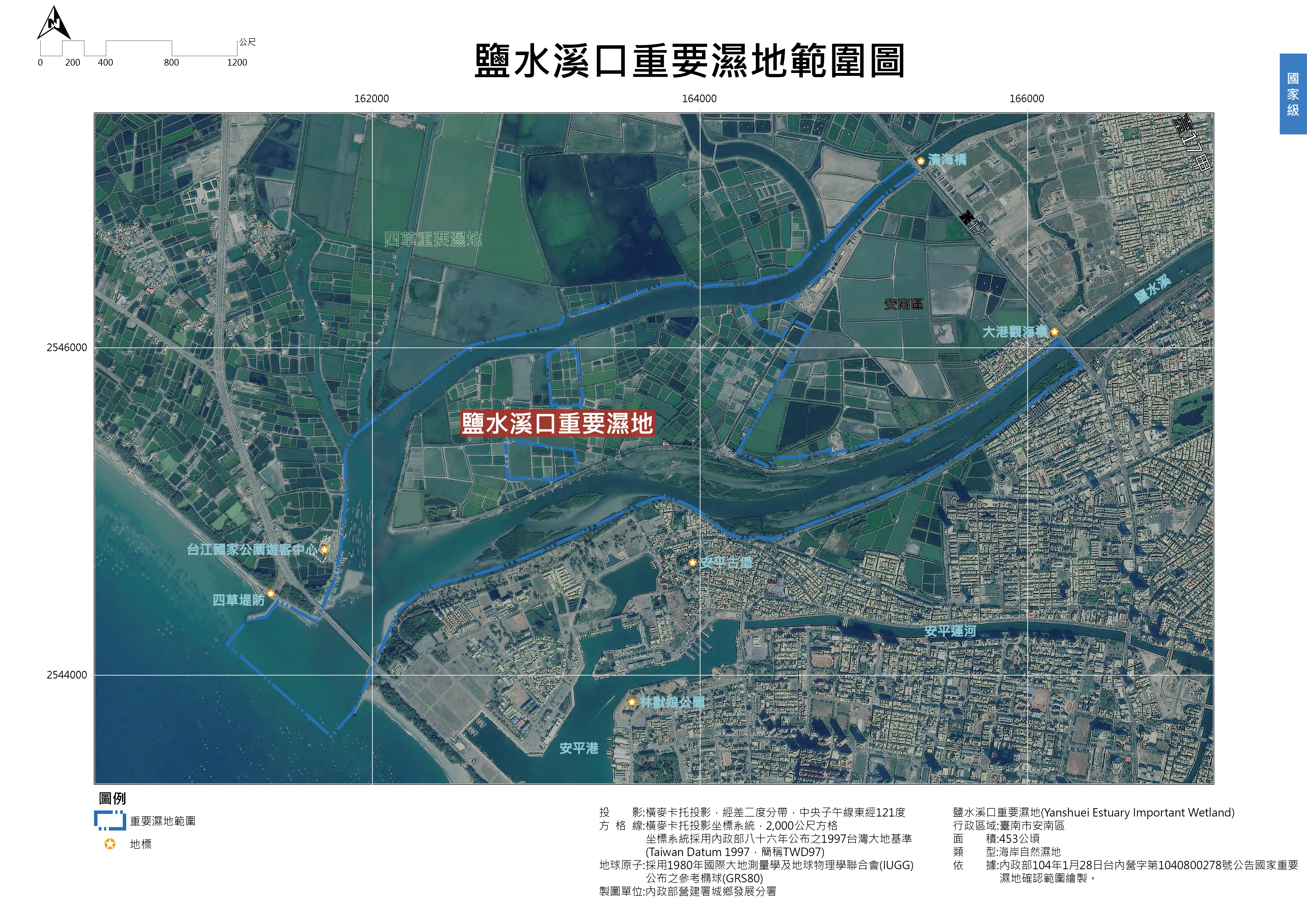 位於臺南市鹽水溪出海口,北側包含四草內海及鹽水溪排水(嘉南大圳排水線),南至安平堤防,東以省道台17 線(濱海橋及大港觀海橋) 為界,西側至海域等深線6 公尺處。